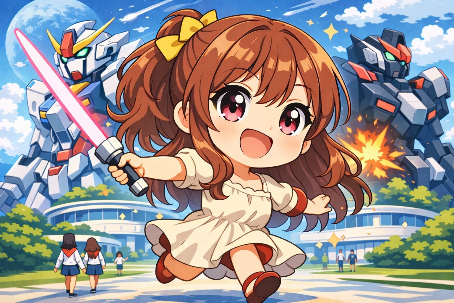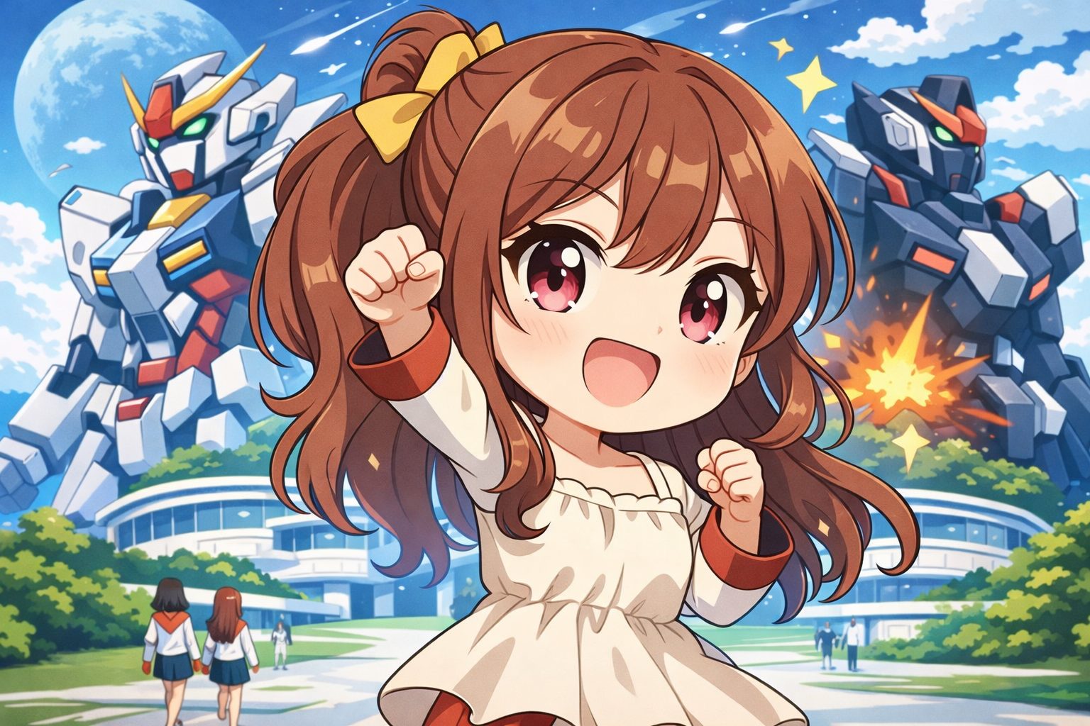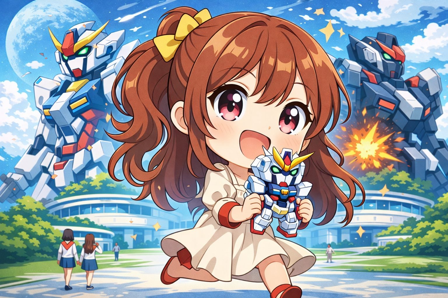 実際に見てみたら、想像していた泥臭い戦争モノじゃなくて、なんと学園を舞台にした全く新しいストーリーでびっくりしました!主人公の女の子がモビルスーツに乗って決闘するんですが、これがもうスタイリッシュでめちゃくちゃ面白いんです。