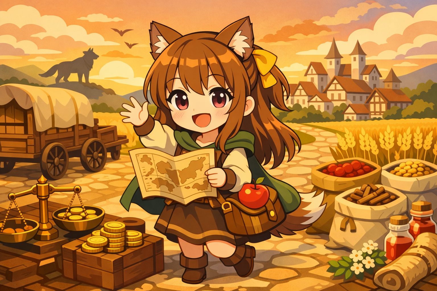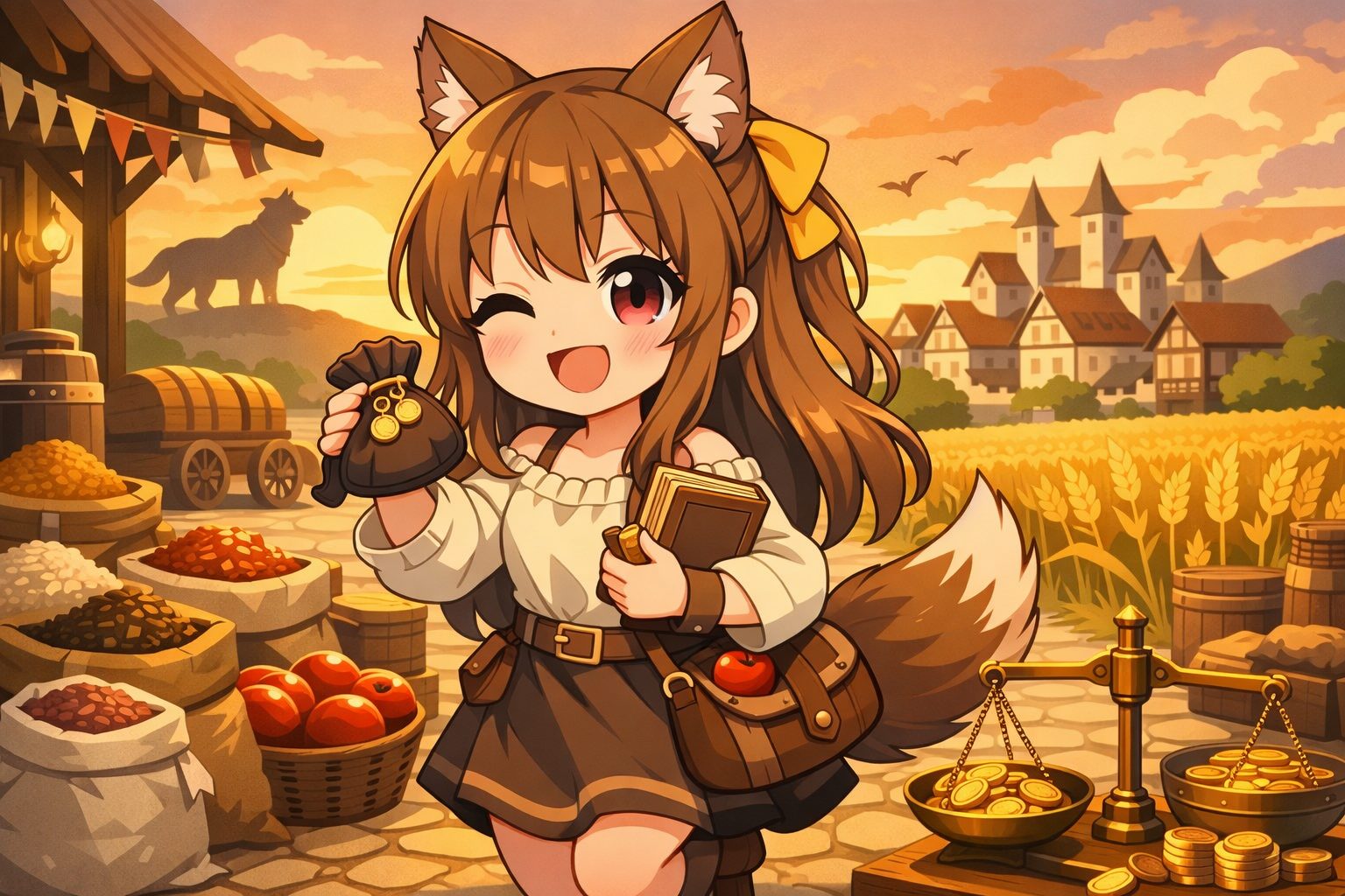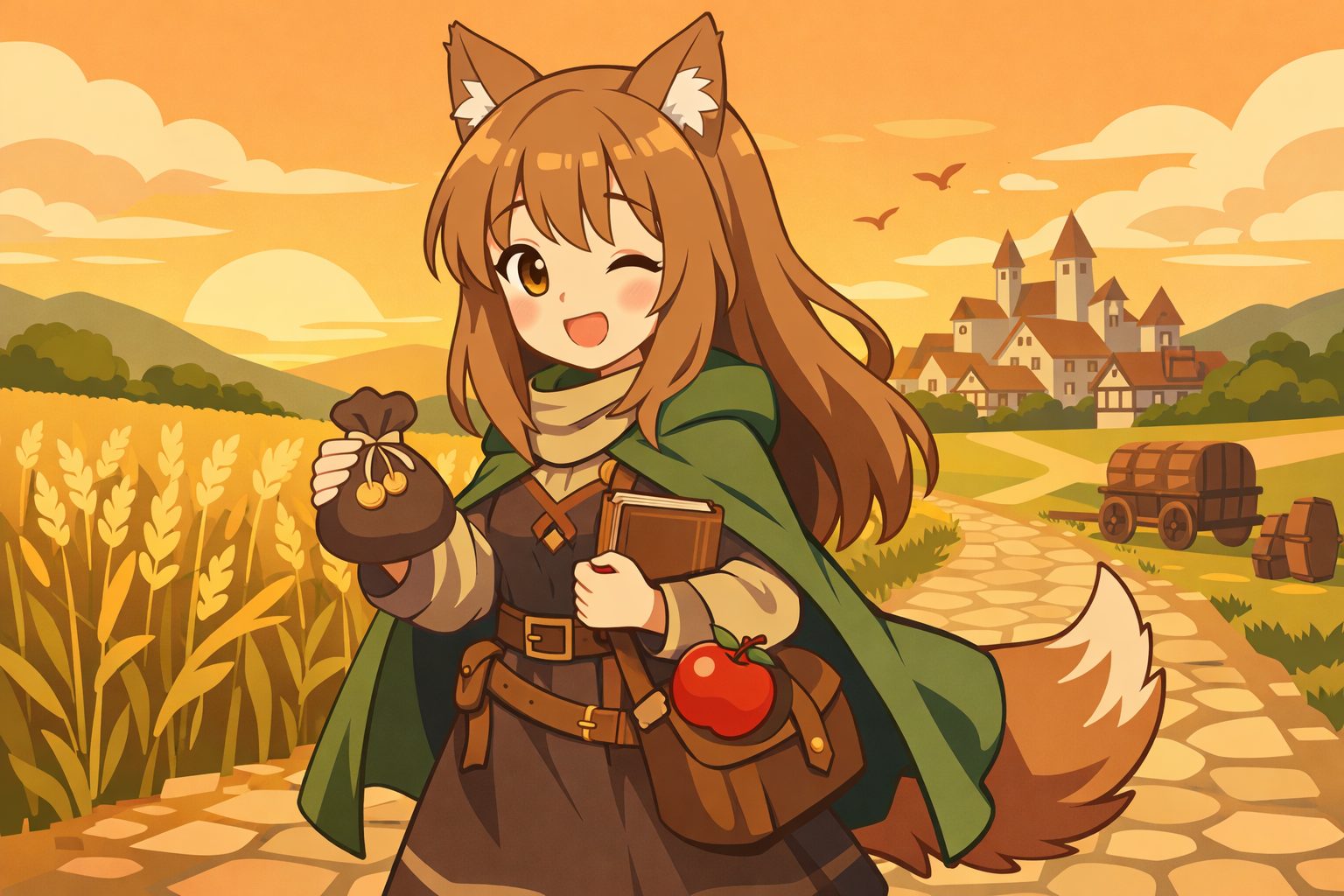 『狼と香辛料』は、行商人ロレンスと賢狼ホロが旅をしながら、商売・経済・人間関係を描くファンタジー作品。