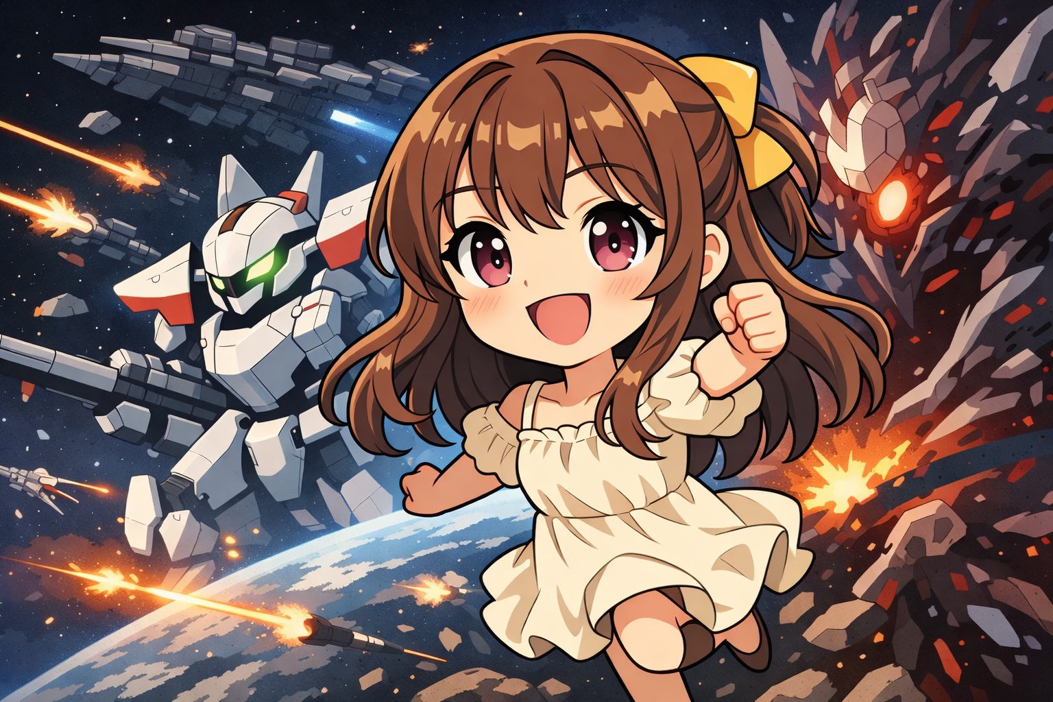 真空の宇宙空間で繰り広げられる戦闘は、重力も空気抵抗もありません。